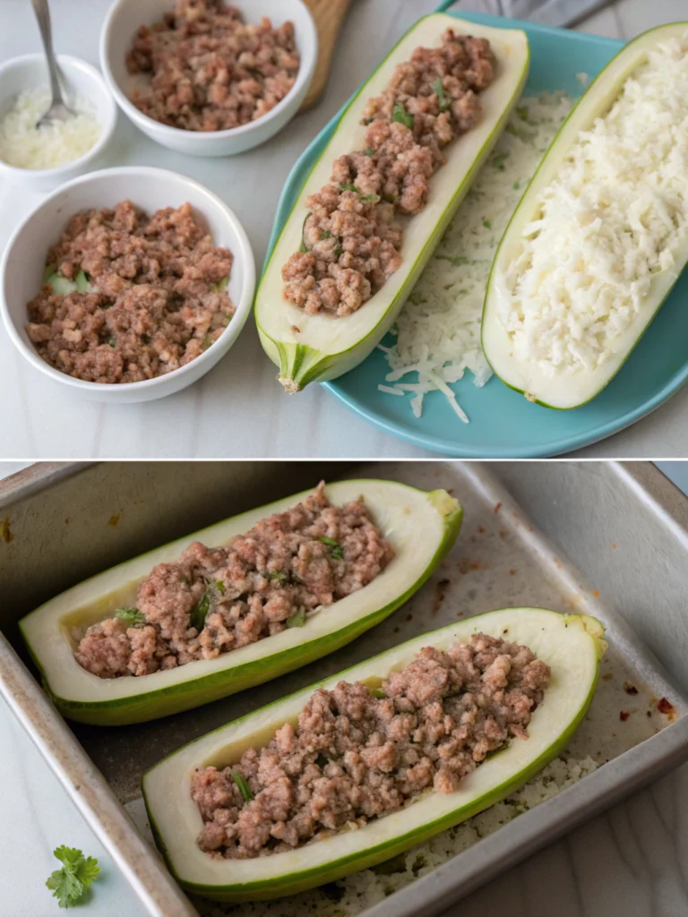Place the hollowed-out marrow halves, cut-side up, in a large baking dish. Carefully spoon the mince and rice mixture into each half, packing it in firmly. Cover the dish tightly with foil. This traps the steam, ensuring the marrow becomes tender and the rice cooks perfectly. Bake in the preheated oven for 45 minutes.